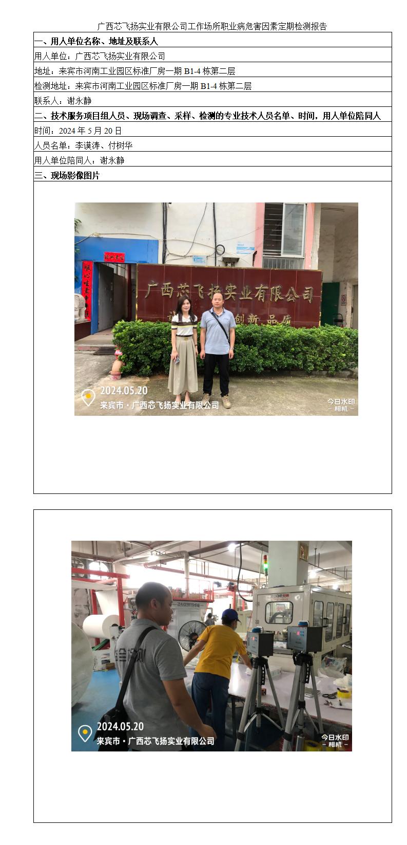 廣西芯飛揚實業(yè)有限公司工作場所職業(yè)病危害因素定期檢測報告