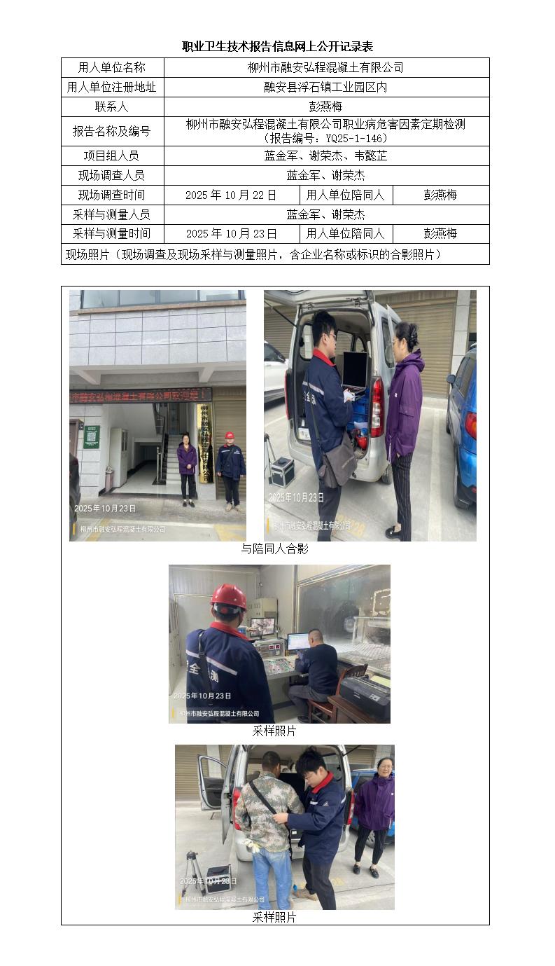 柳州市融安弘程混凝土有限公司職業(yè)病危害因素定期檢測 (報告編號:YQ25-1-146)