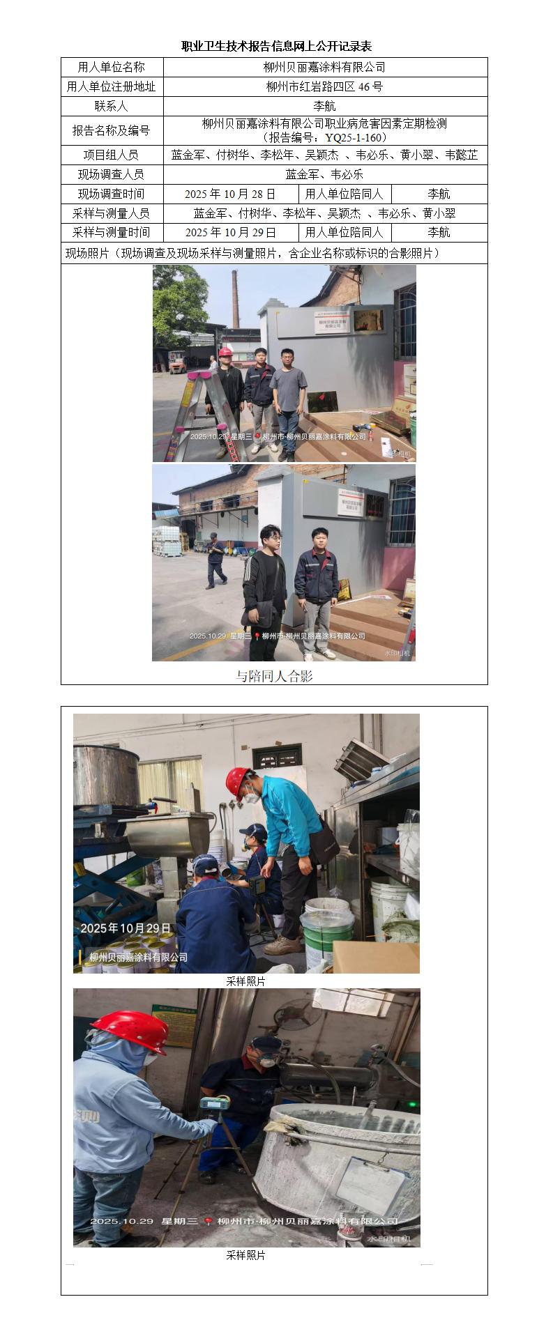 柳州貝麗嘉涂料有限公司職業(yè)病危害因素定期檢測 (報(bào)告編號:YQ25-1-160)