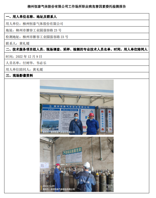 柳州恒泰氣體股份有限公司工作場(chǎng)所職業(yè)病危害因素委托檢測(cè)報(bào)告