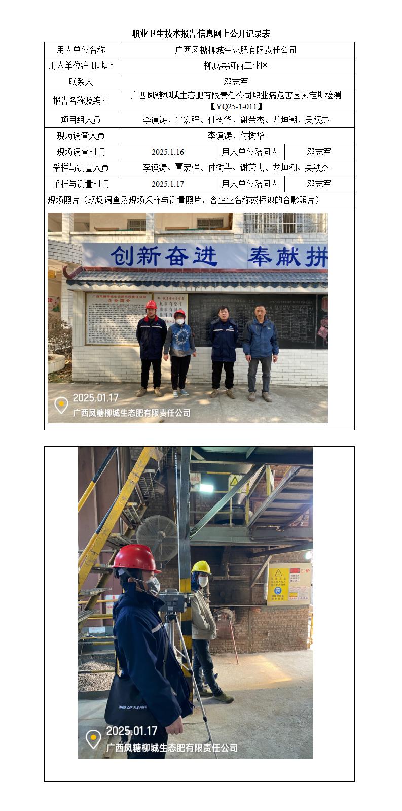 廣西鳳糖柳城生態(tài)肥有限責(zé)任公司職業(yè)病危害因素定期檢測(cè)報(bào)告