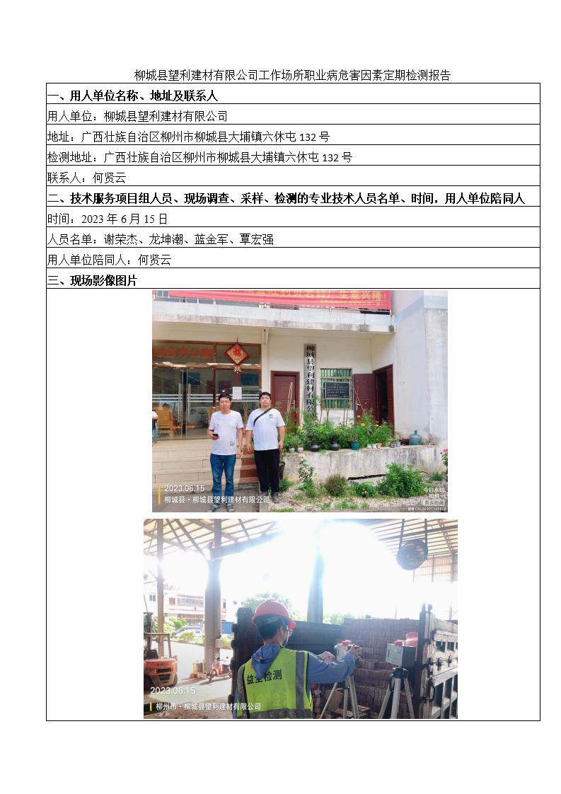柳城縣望利建材有限公司工作場所職業(yè)病危害因素定期檢測報告