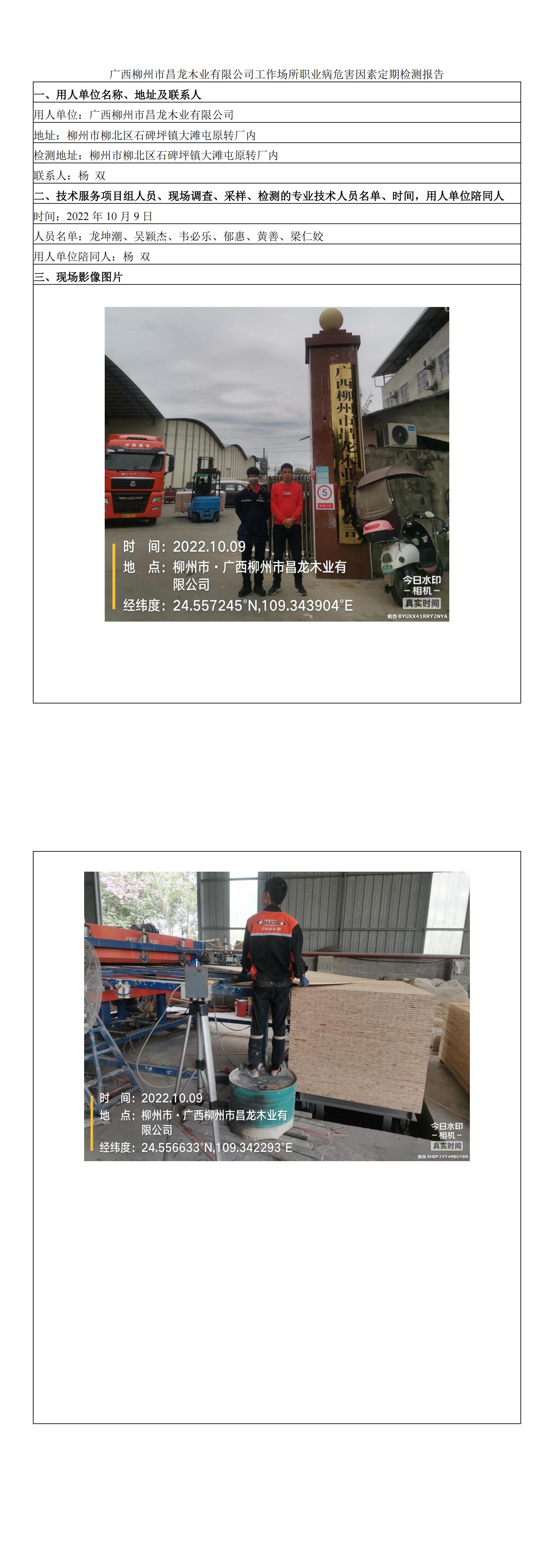 廣西柳州市昌龍木業(yè)有限公司工作場所職業(yè)病危害因素定期檢測報(bào)告