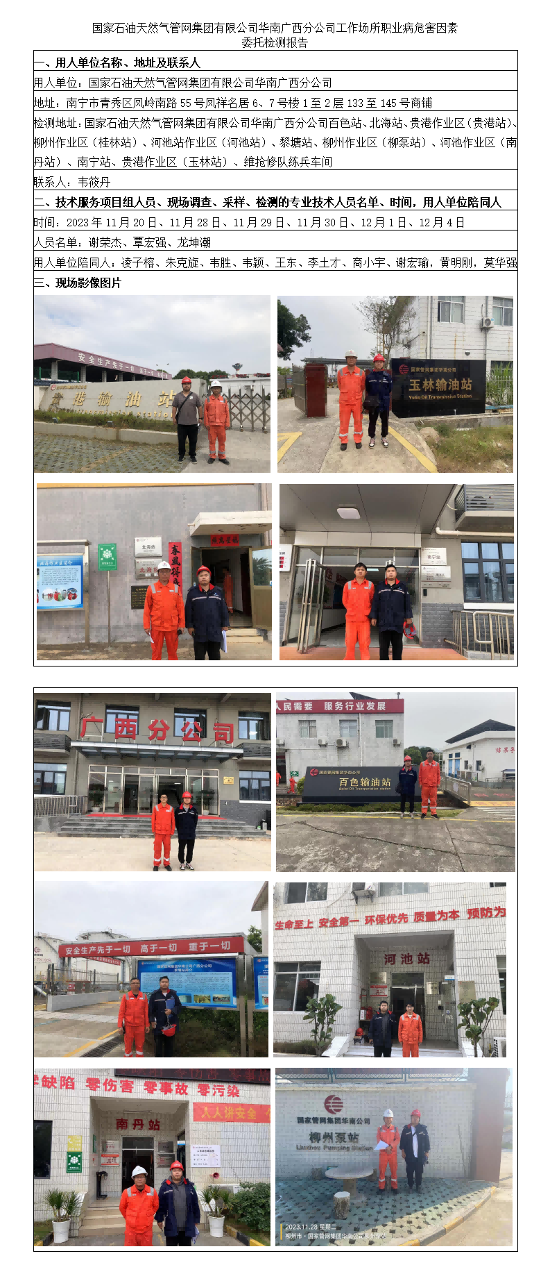 國(guó)家石油天然氣管網(wǎng)集團(tuán)有限公司華南廣西分公司工作場(chǎng)所職業(yè)病危害因素委托檢測(cè)報(bào)告
