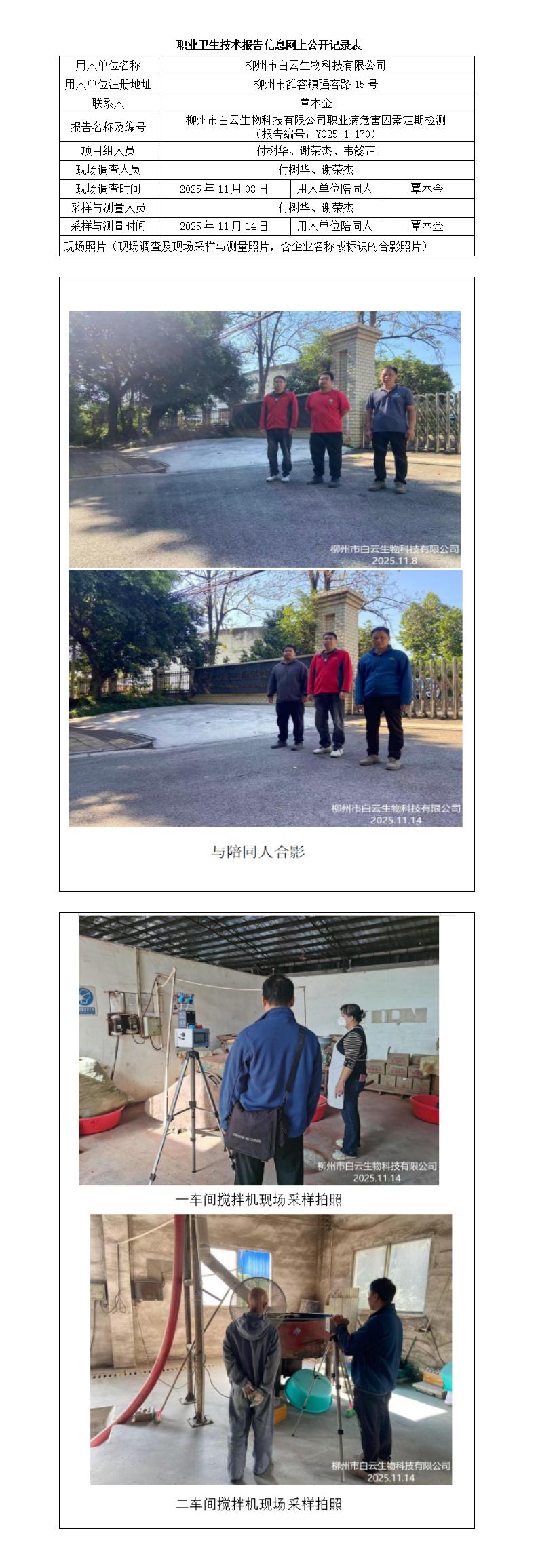 柳州市白云生物科技有限公司職業(yè)病危害因素定期檢測(cè) (報(bào)告編號(hào):YQ25-1-170)