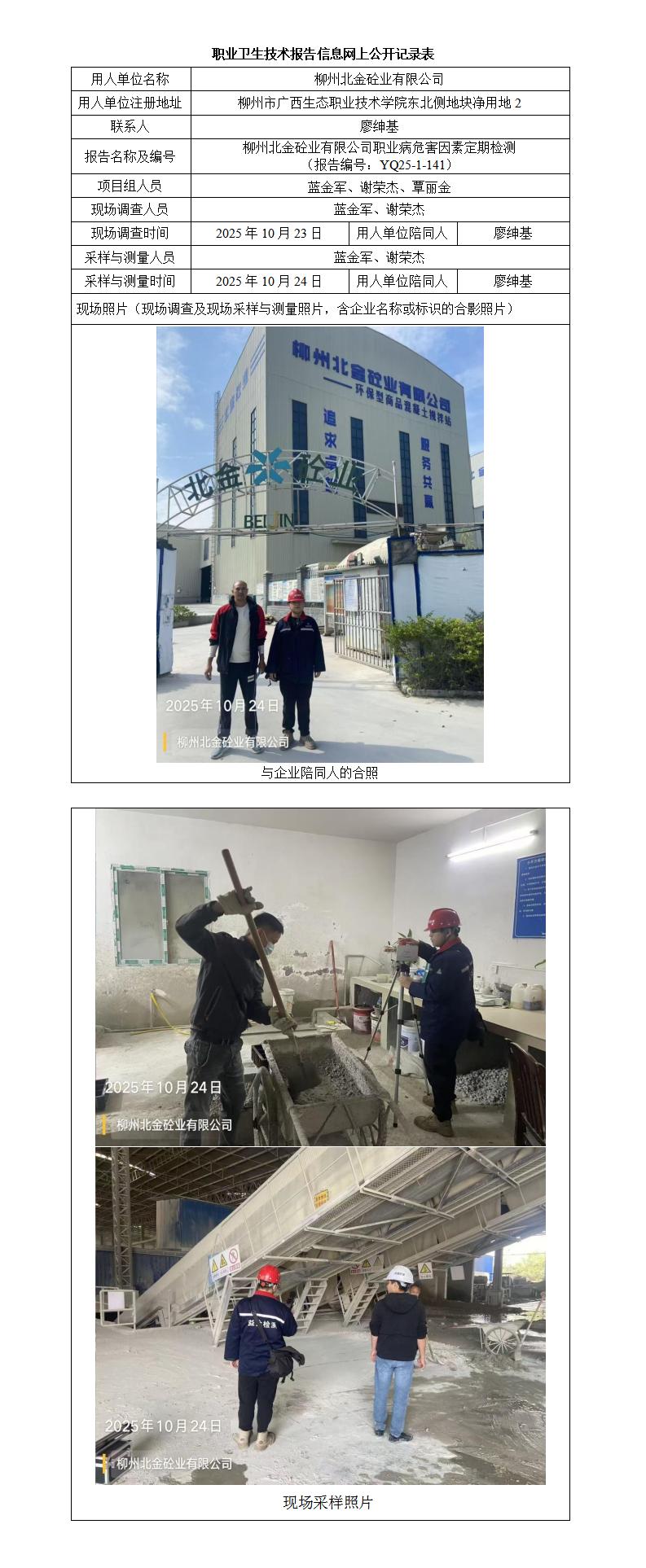 柳州北金砼業(yè)有限公司職業(yè)病危害因素定期檢測