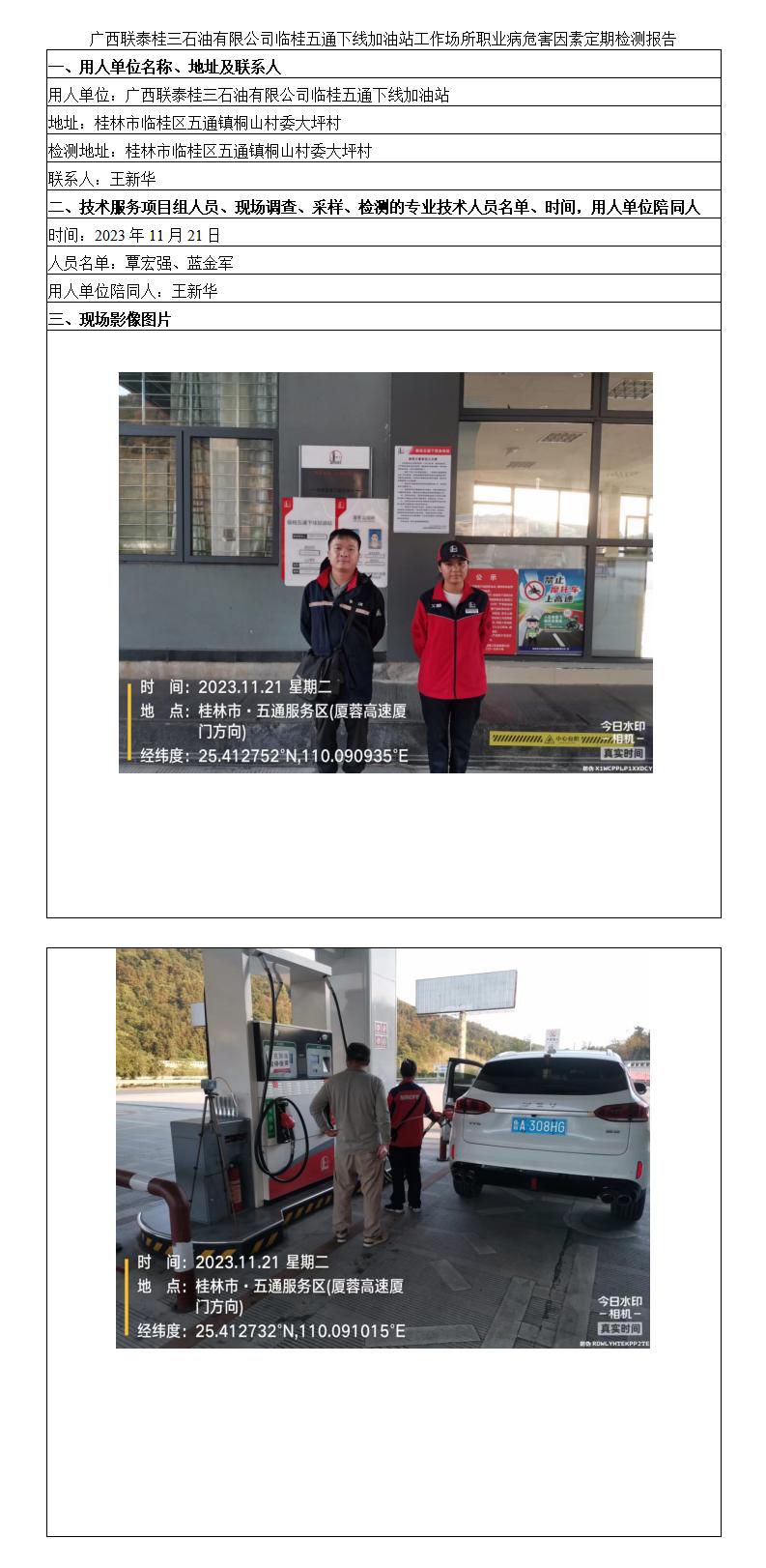 廣西聯(lián)泰桂三石油有限公司臨桂五通下線加油站工作場(chǎng)所職業(yè)病危害因素定期檢測(cè)報(bào)告