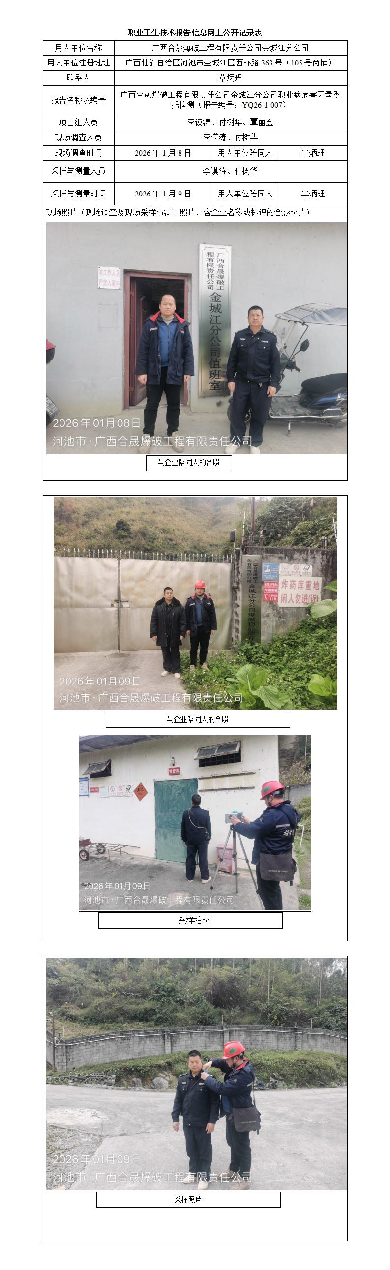 廣西合晟爆破工程有限責(zé)任公司金城江分公司職業(yè)病危害因素委托檢測
