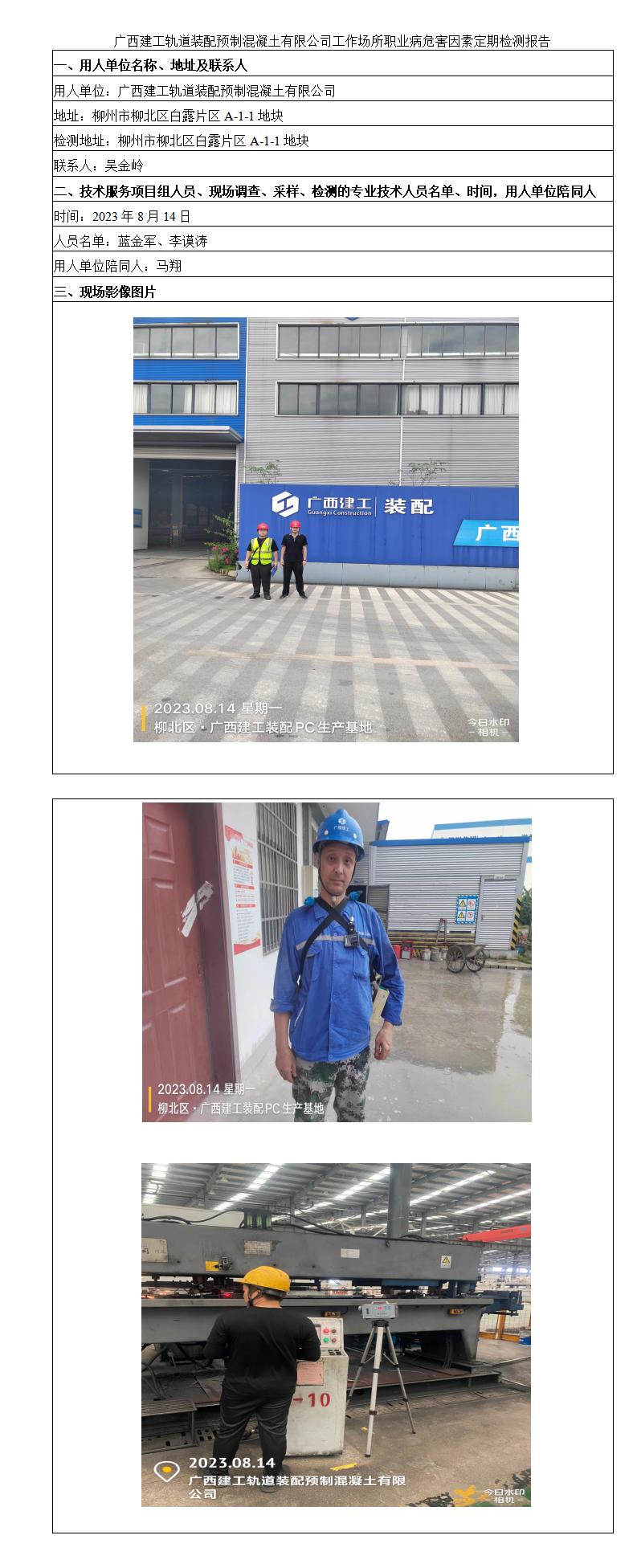 廣西建工軌道裝配預(yù)制混凝土有限公司工作場所職業(yè)病危害因素定期檢測報(bào)告