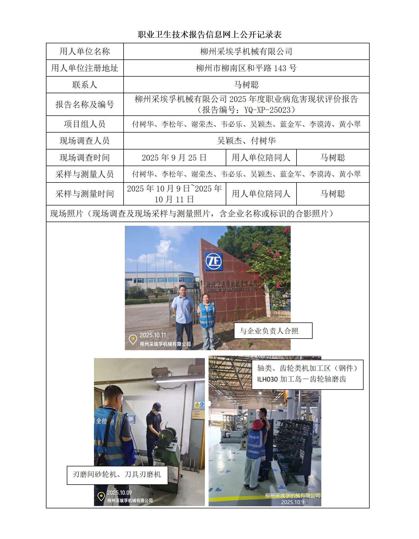 柳州采埃孚機(jī)械有限公司2025年度職業(yè)病危害現(xiàn)狀評(píng)價(jià)報(bào)告