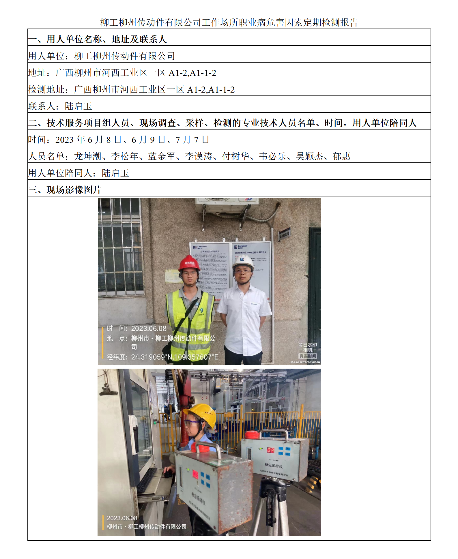 柳工柳州傳動(dòng)件有限公司定期檢測(cè)報(bào)告