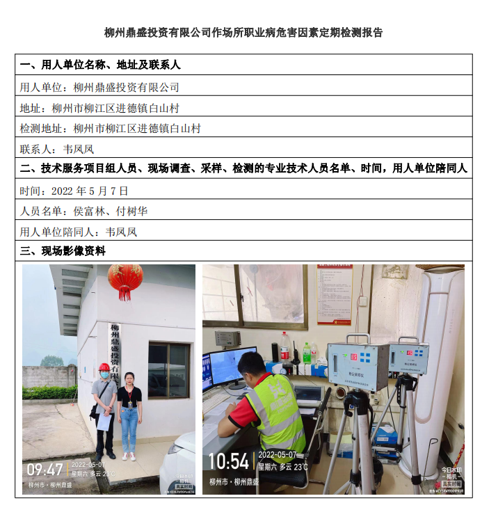 柳州鼎盛投資有限公司作場所職業(yè)病危害因素定期檢測報告