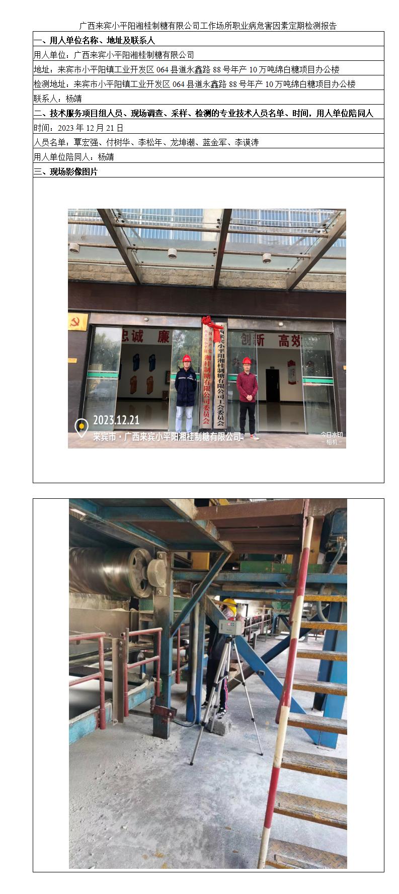 廣西來賓小平陽湘桂制糖有限公司工作場所職業(yè)病危害因素定期檢測報告