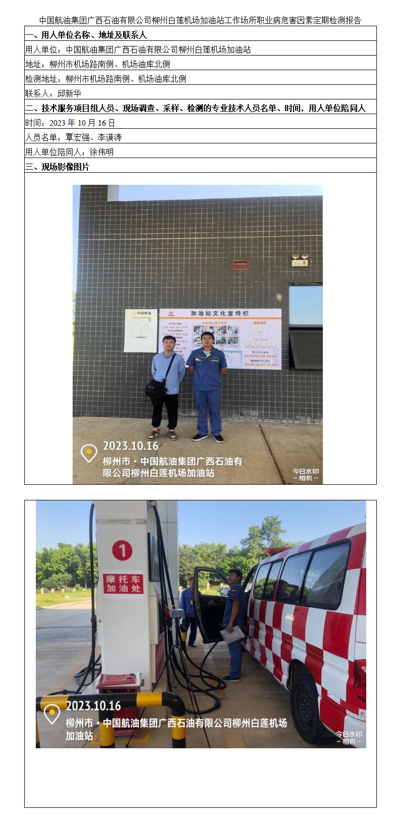 中國(guó)航油集團(tuán)廣西石油有限公司柳州白蓮機(jī)場(chǎng)加油站工作場(chǎng)所職業(yè)病危害因素定期檢測(cè)報(bào)告