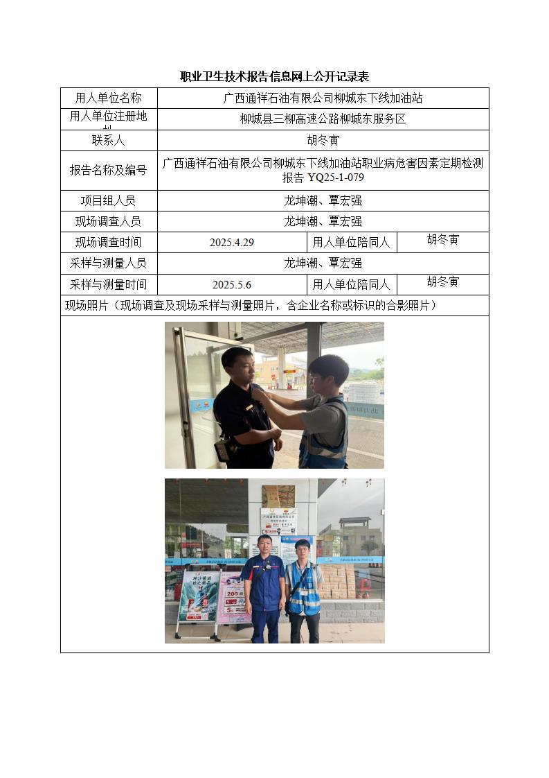 廣西通祥石油有限公司柳城東下線加油站職業(yè)病危害因素定期檢測(cè)報(bào)告