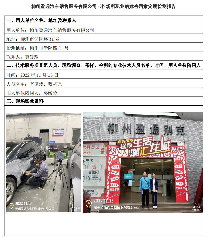 柳州盈通汽車銷售服務(wù)有限公司工作場(chǎng)所職業(yè)病危害因素定期檢測(cè)報(bào)告