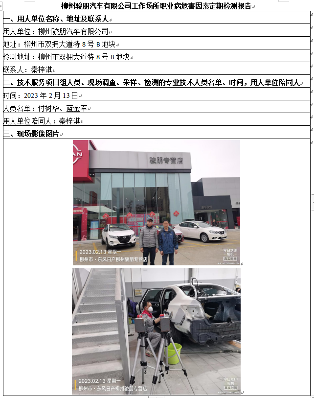 柳州駿朋汽車有限公司工作場所職業(yè)病危害因素定期檢測報(bào)告