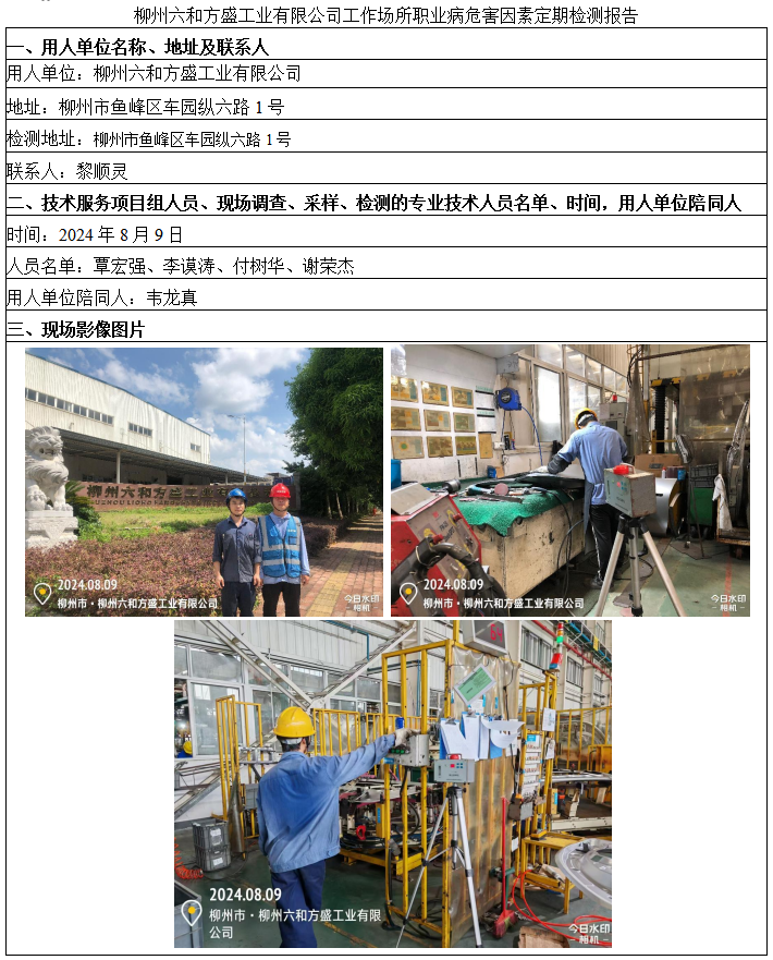 柳州六和方盛工業(yè)有限公司工作場所職業(yè)病危害因素定期檢測報告