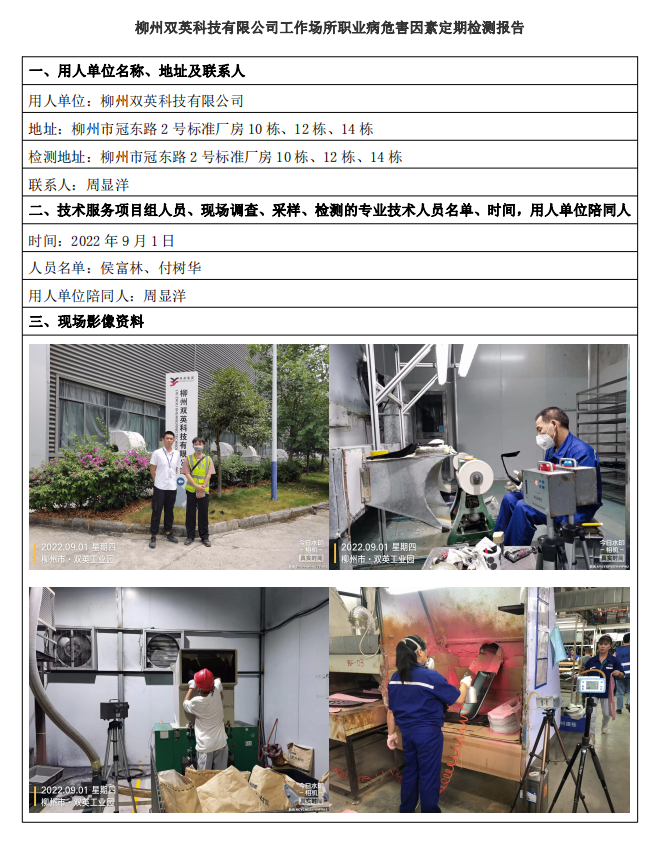 柳州雙英科技有限公司工作場(chǎng)所職業(yè)病危害因素定期檢測(cè)報(bào)告