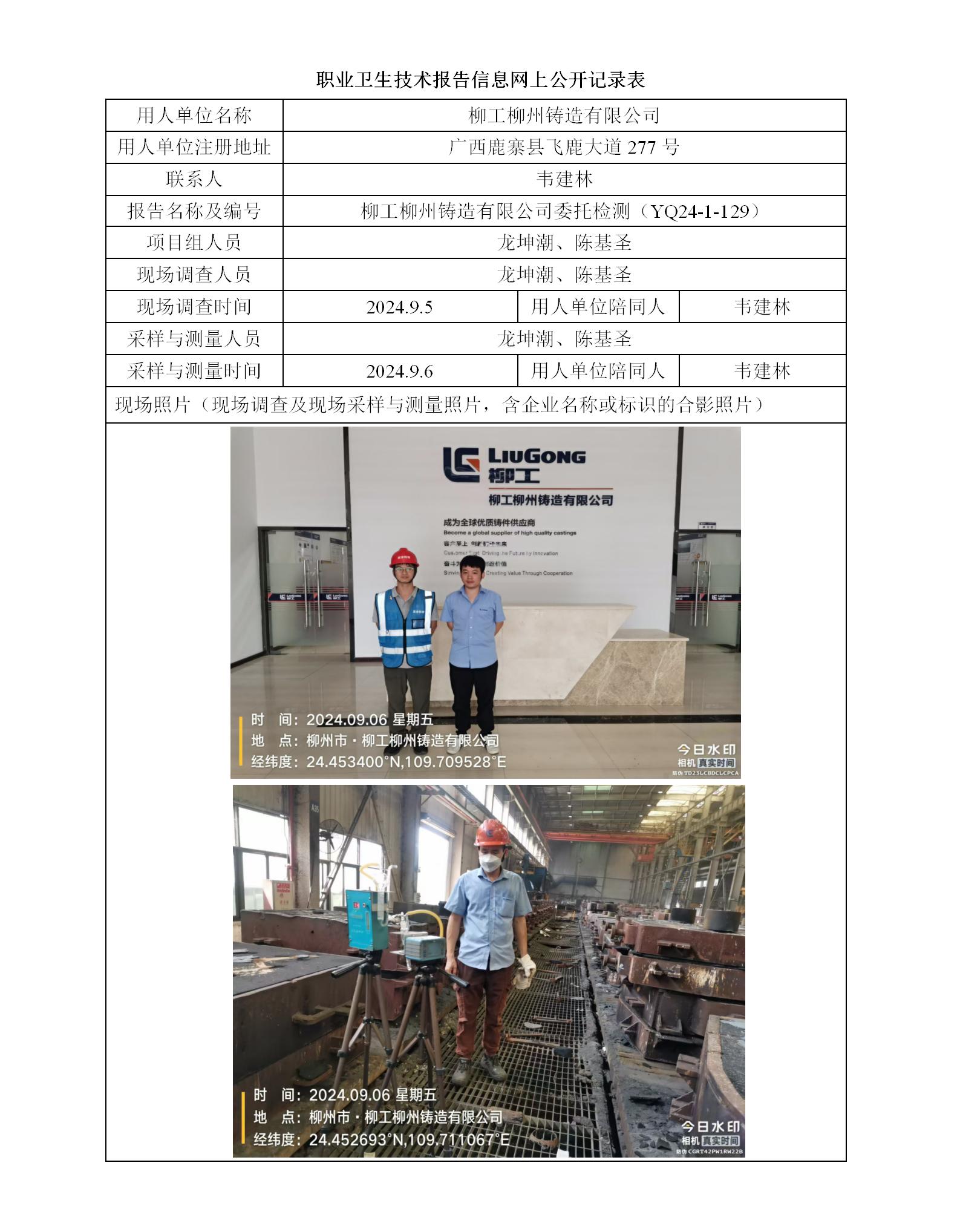 柳工柳州鑄造有限公司工作場所職業(yè)病危害因素委托檢測報告