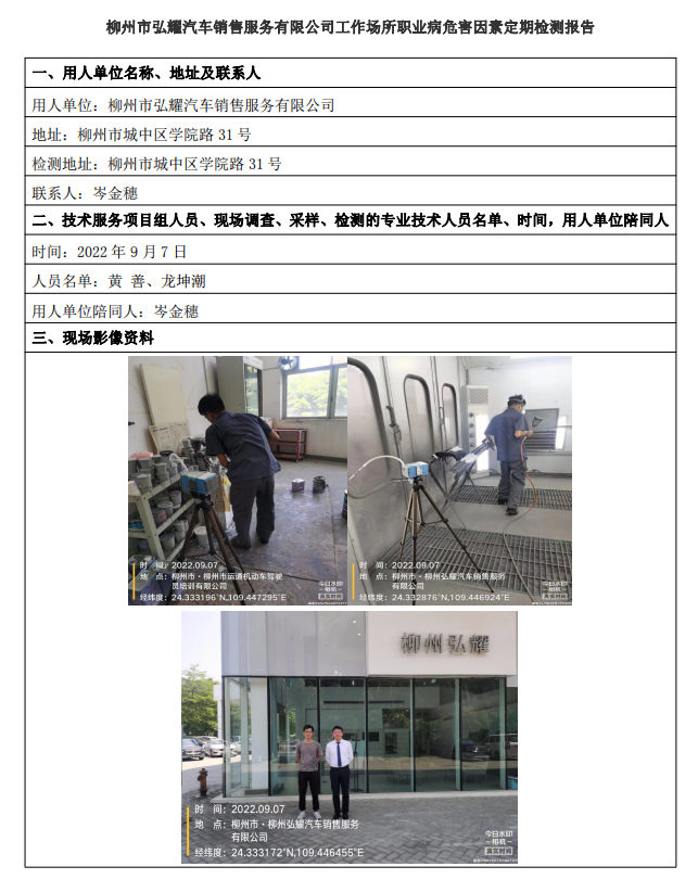 柳州市弘耀汽車銷售服務(wù)有限公司工作場(chǎng)所職業(yè)病危害因素定期檢測(cè)報(bào)告