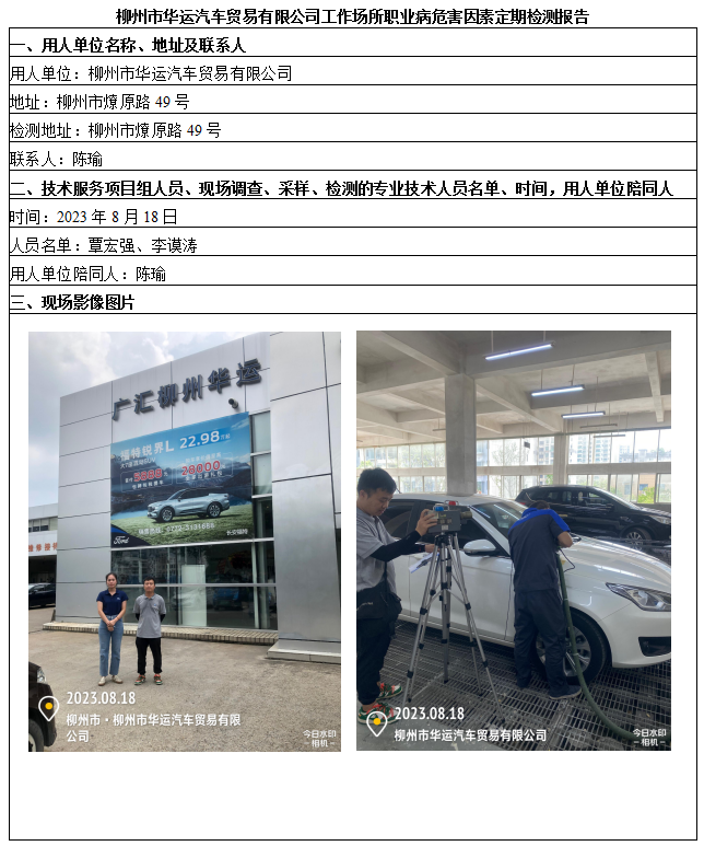 柳州市華運(yùn)汽車貿(mào)易有限公司工作場所職業(yè)病危害因素定期檢測報(bào)告