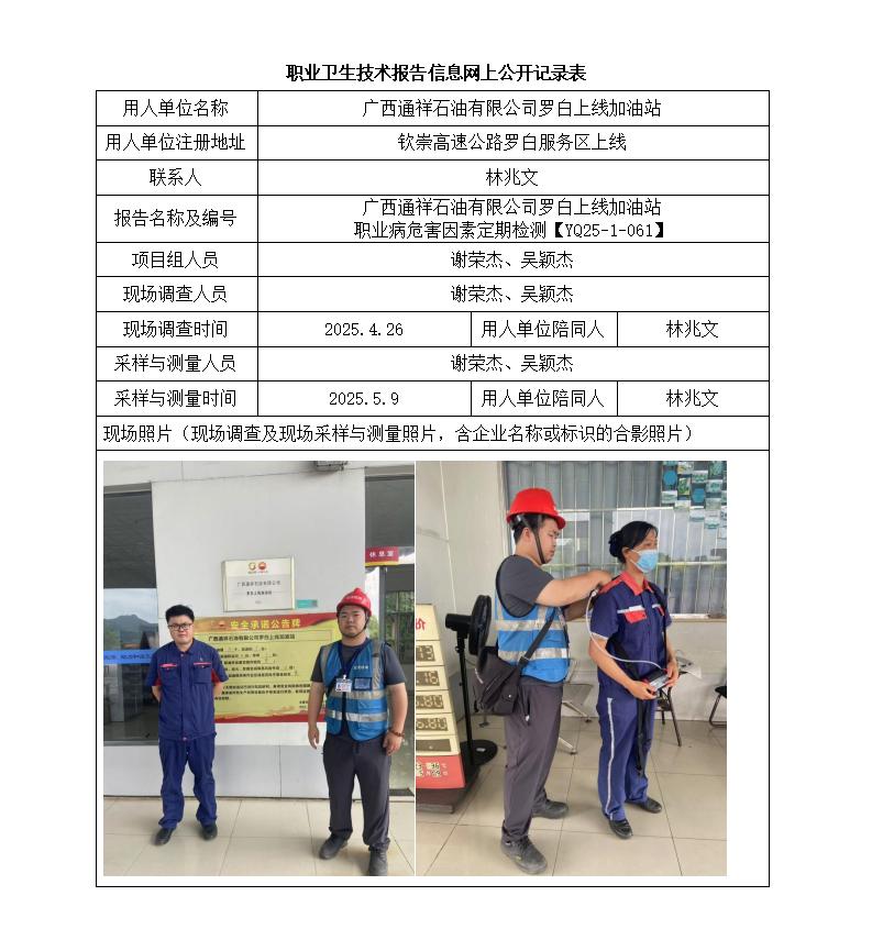 廣西通祥石油有限公司羅白上線加油站 職業(yè)病危害因素定期檢測報告