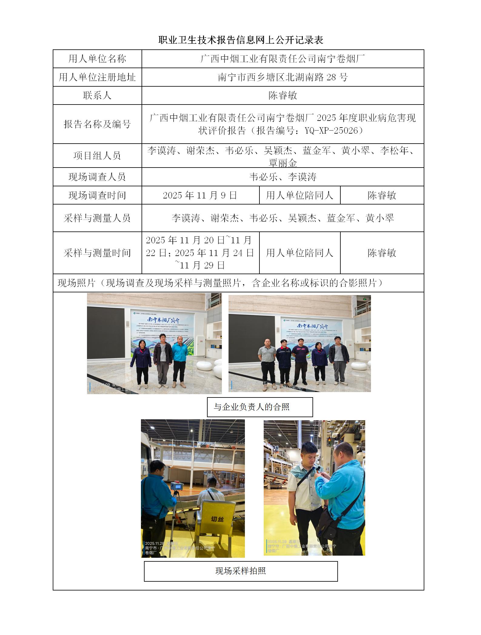 廣西中煙工業(yè)有限責(zé)任公司南寧卷煙廠2025年度職業(yè)病危害現(xiàn)狀評(píng)價(jià)報(bào)告