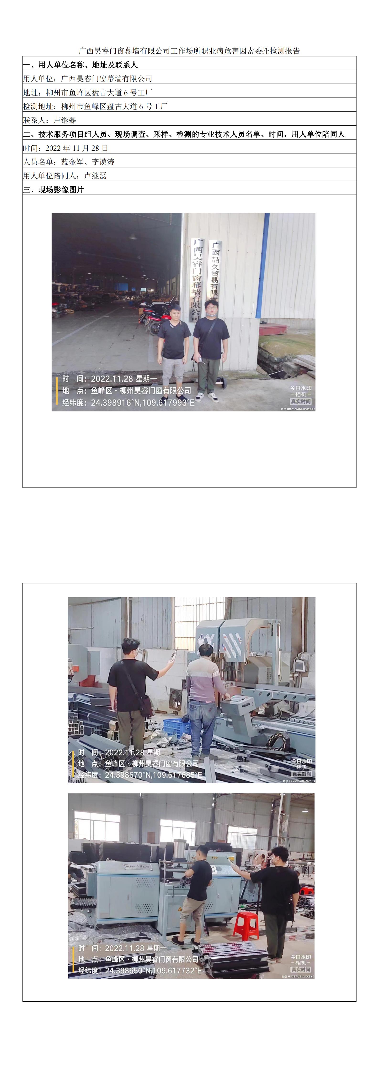 廣西昊睿門窗幕墻有限公司工作場所職業(yè)病危害因素委托檢測報告