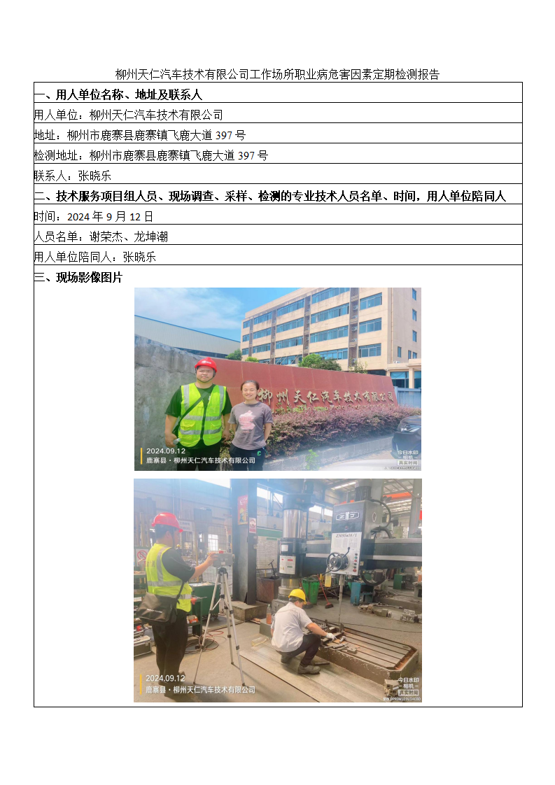 柳州天仁汽車技術(shù)有限公司工作場所職業(yè)病危害因素定期檢測報告