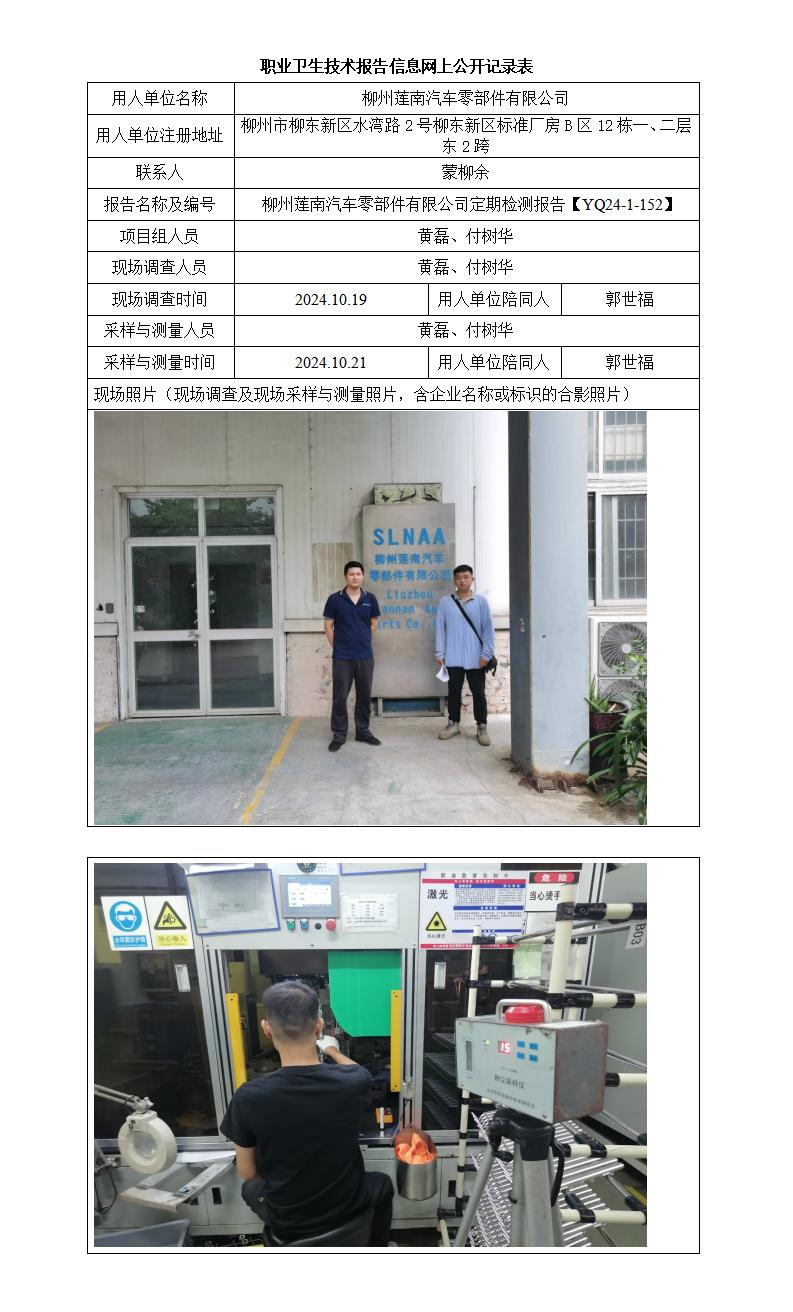 柳州蓮南汽車零部件有限公司定期檢測報告
