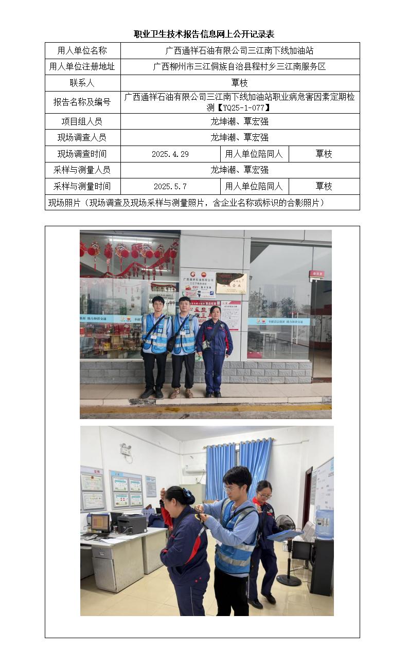 廣西通祥石油有限公司三江南下線加油站職業(yè)病危害因素定期檢測(cè)報(bào)告