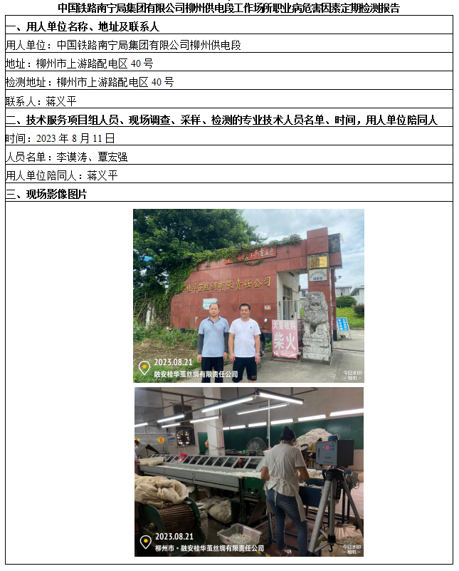 融安縣桂華繭絲綢有限公司工作場所職業(yè)病危害因素定期檢測報(bào)告