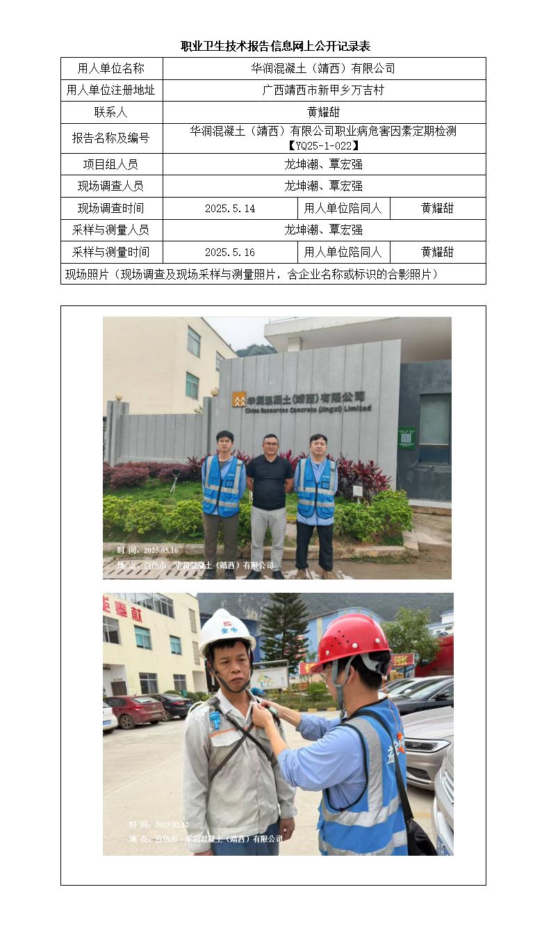 華潤混凝土(靖西)有限公司職業(yè)病危害因素定期檢測報告