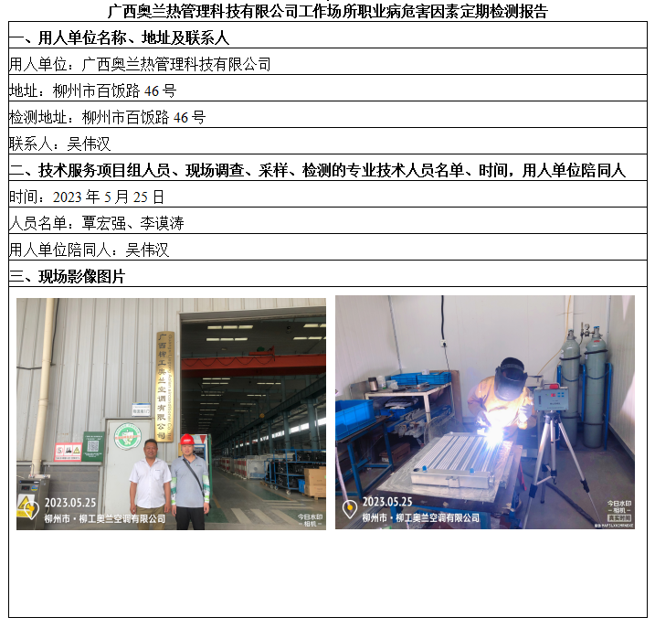 廣西奧蘭熱管理科技有限公司工作場所職業(yè)病危害因素定期檢測報(bào)告