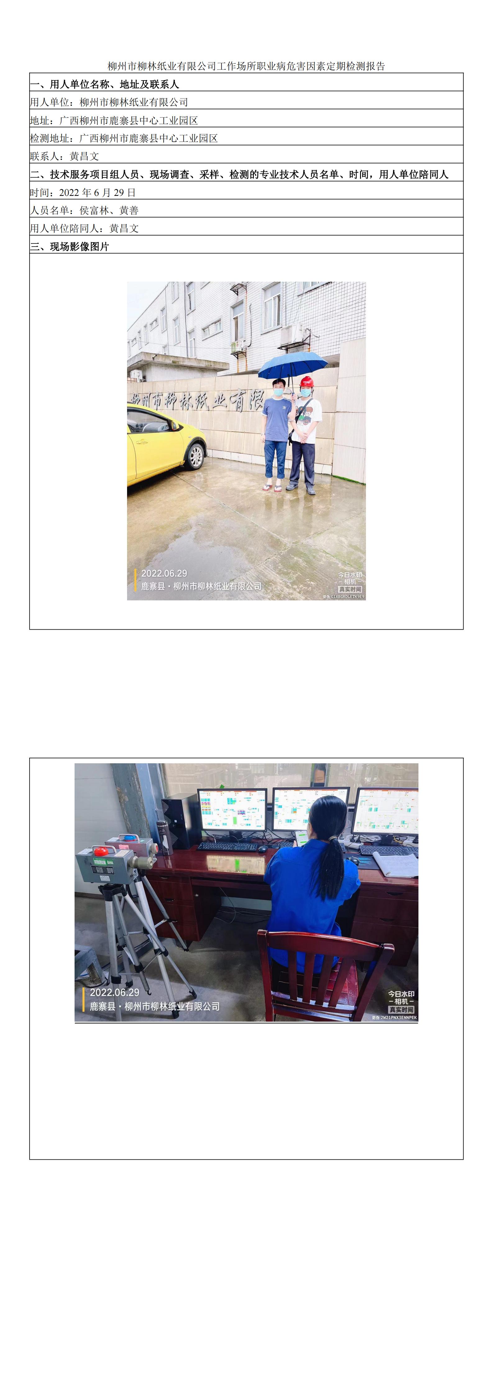 柳州市柳林紙業(yè)有限公司工作場所職業(yè)病危害因素定期檢測報告