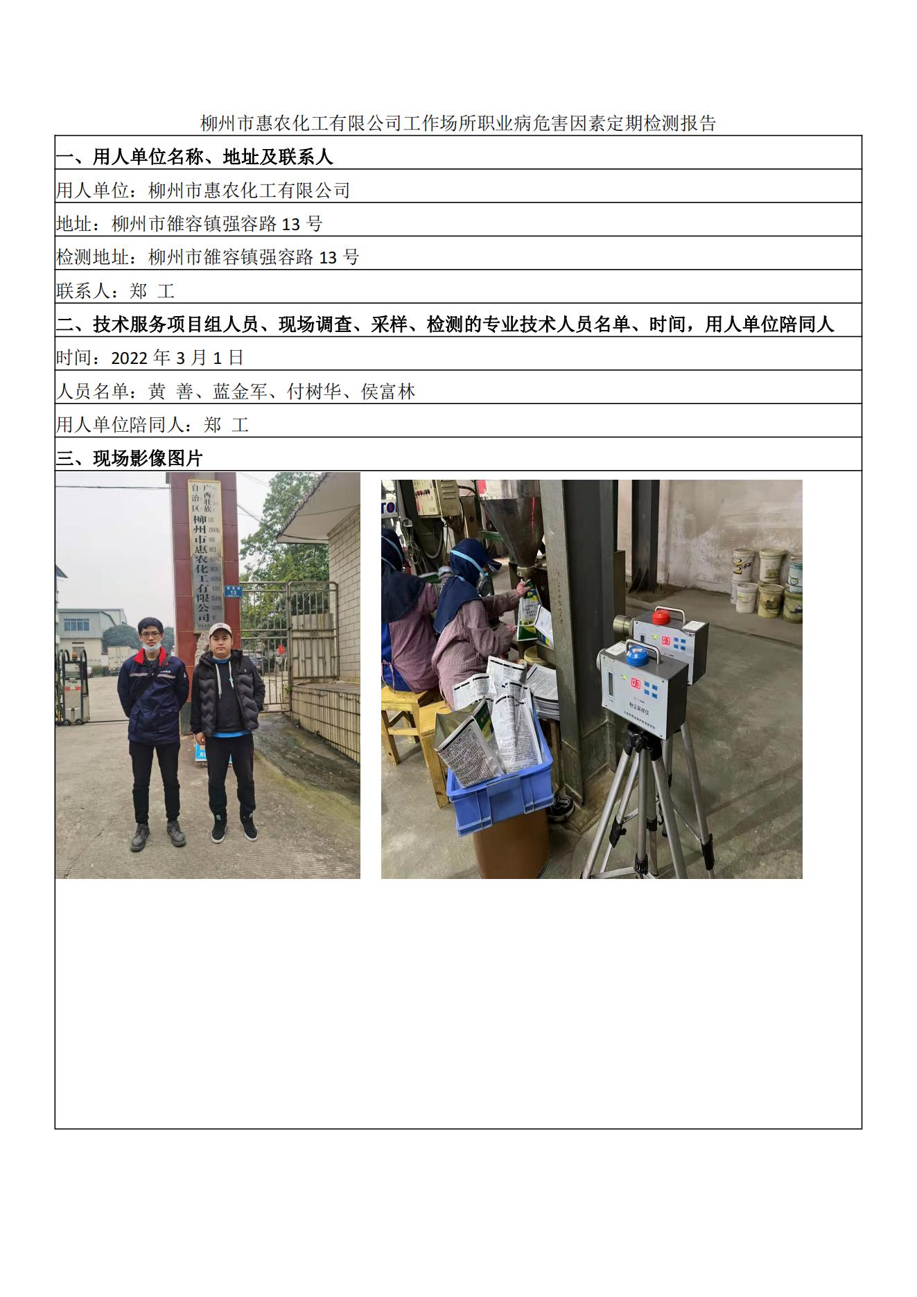 柳州市惠農(nóng)化工有限公司工作場所職業(yè)病危害因素定期檢測報告
