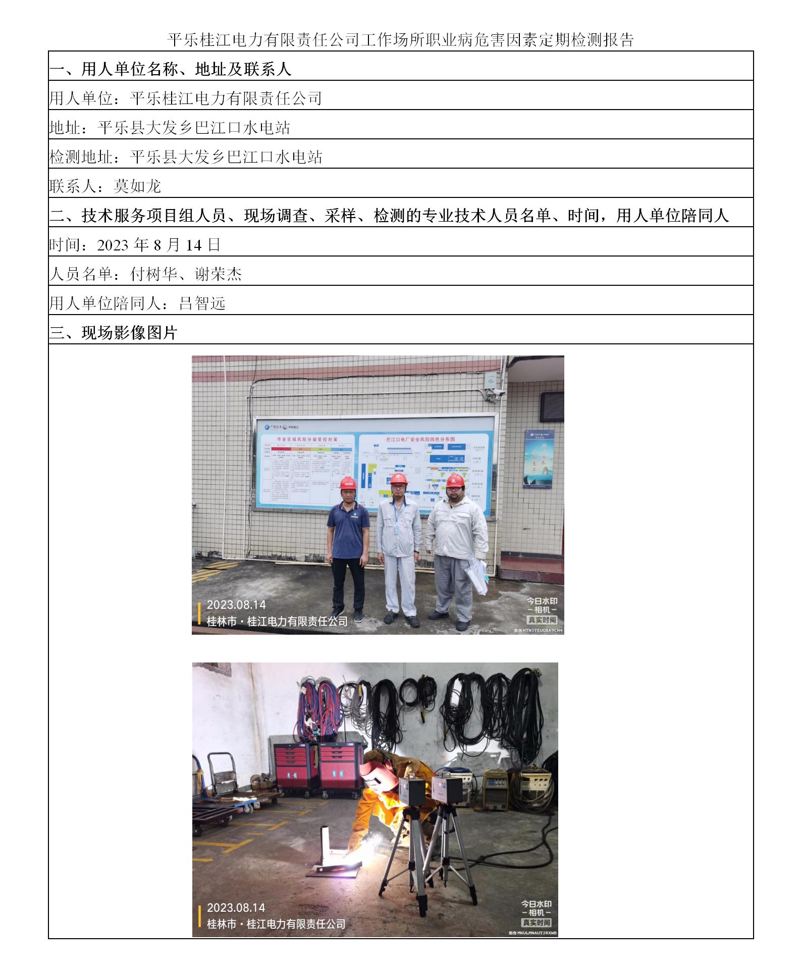 平樂桂江電力有限責(zé)任公司工作場(chǎng)所職業(yè)病危害因素定期檢測(cè)報(bào)告