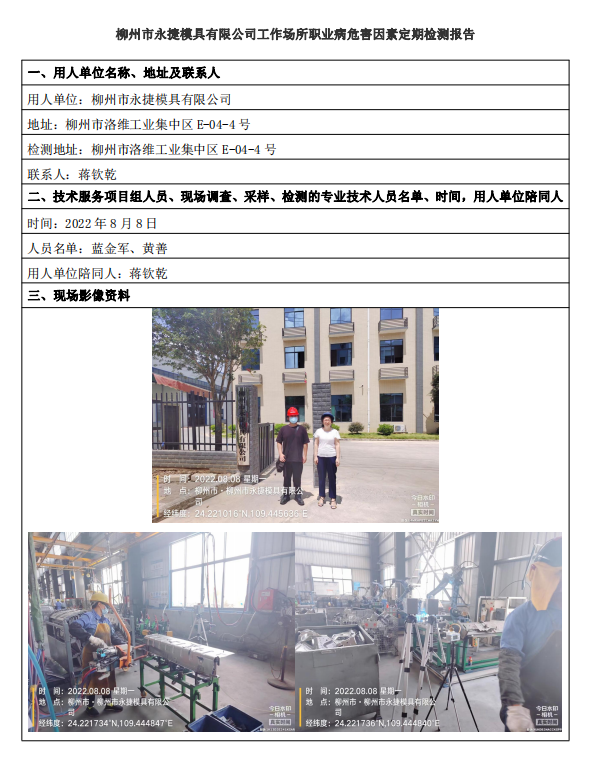 柳州市永捷模具有限公司工作場所職業(yè)病危害因素定期檢測報告
