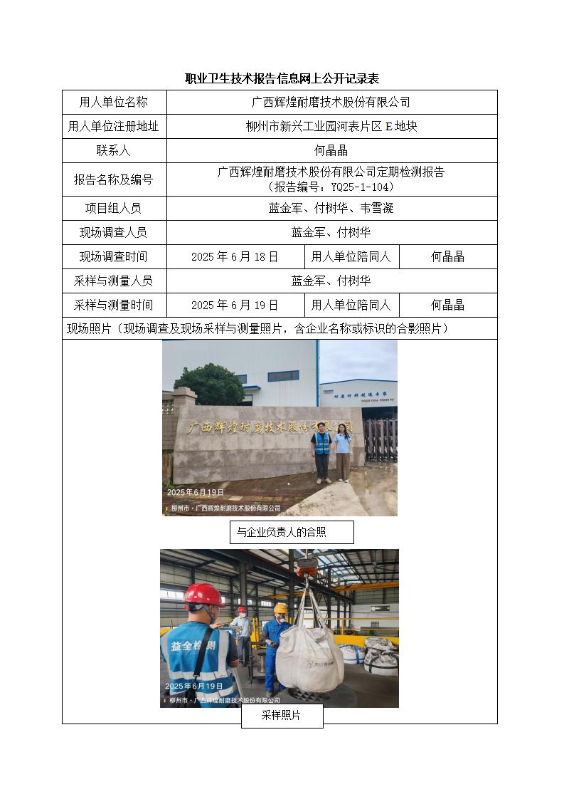 廣西輝煌耐磨技術(shù)股份有限公司定期檢測(cè)報(bào)告