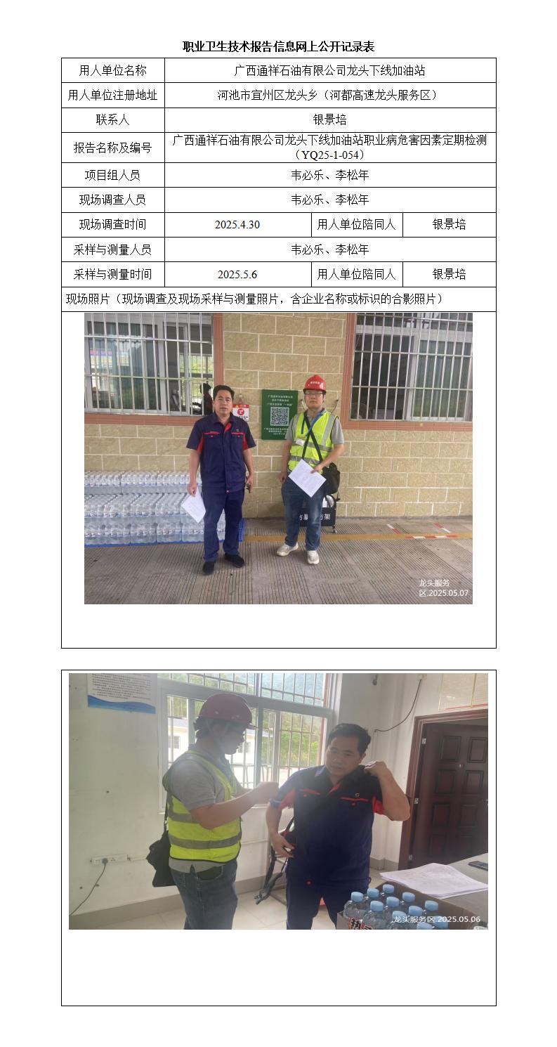 廣西通祥石油有限公司龍頭下線加油站職業(yè)病危害因素定期檢測