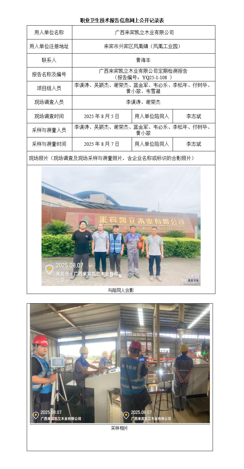 廣西來賓凱立木業(yè)有限公司定期檢測(cè)