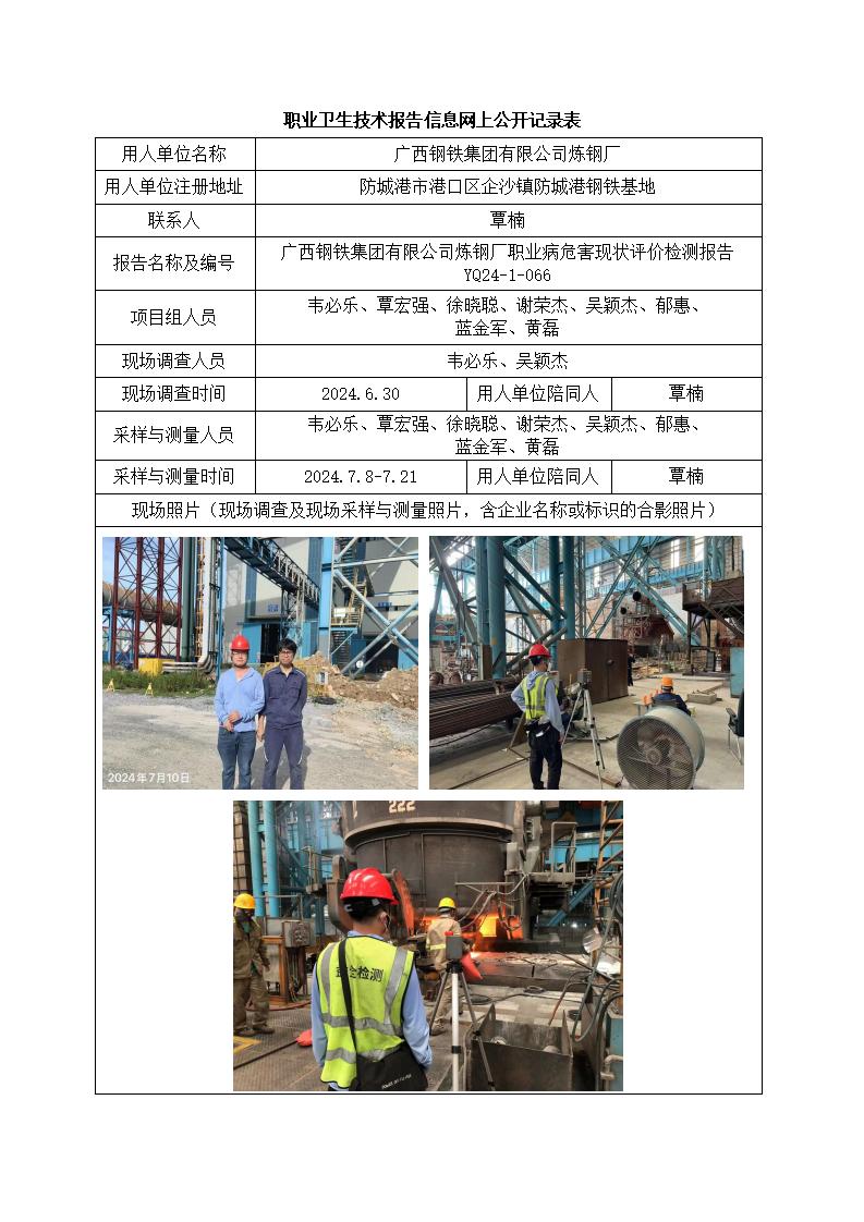 廣西鋼鐵集團(tuán)有限公司煉鋼廠職業(yè)病危害現(xiàn)狀評(píng)價(jià)檢測(cè)