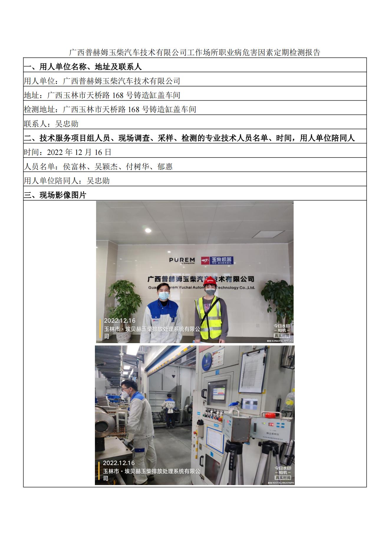 廣西普赫姆玉柴汽車技術(shù)有限公司工作場所職業(yè)病危害因素定期檢測報告