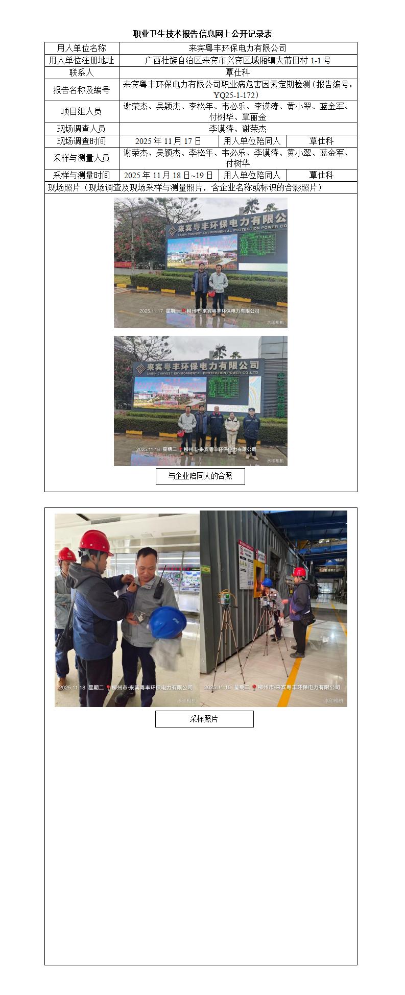來賓粵豐環(huán)保電力有限公司職業(yè)病危害因素定期檢測