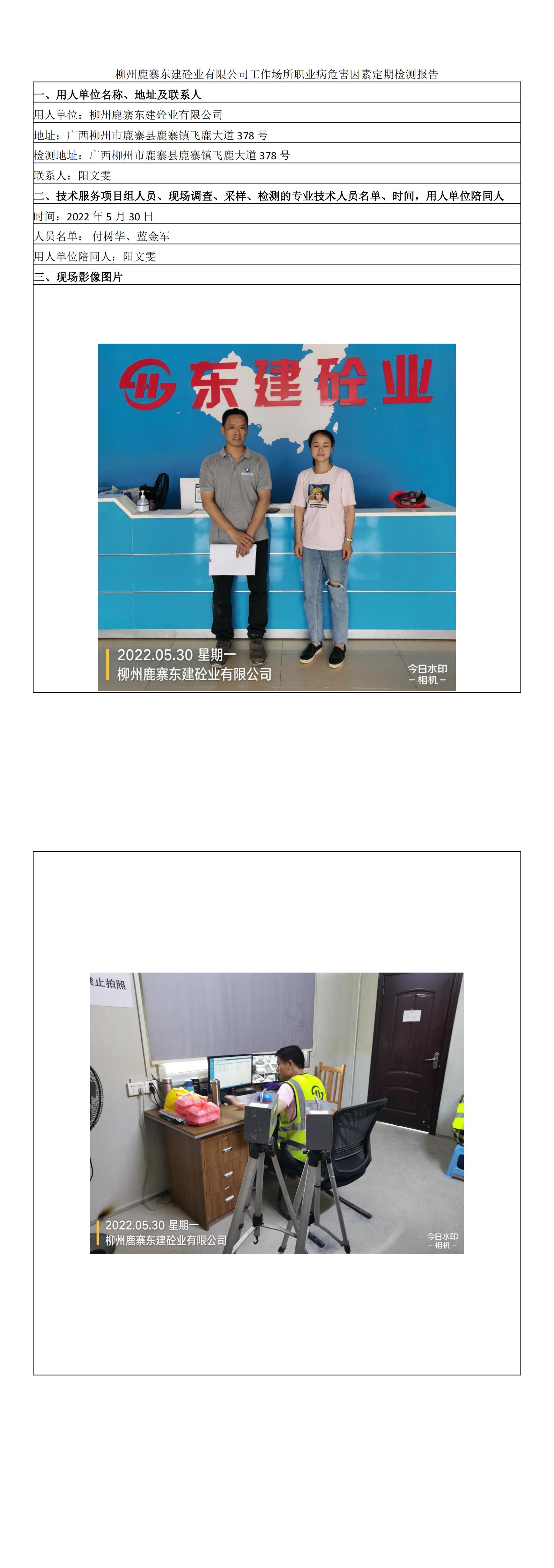 柳州鹿寨東建砼業(yè)有限公司工作場(chǎng)所職業(yè)病危害因素定期檢測(cè)報(bào)告