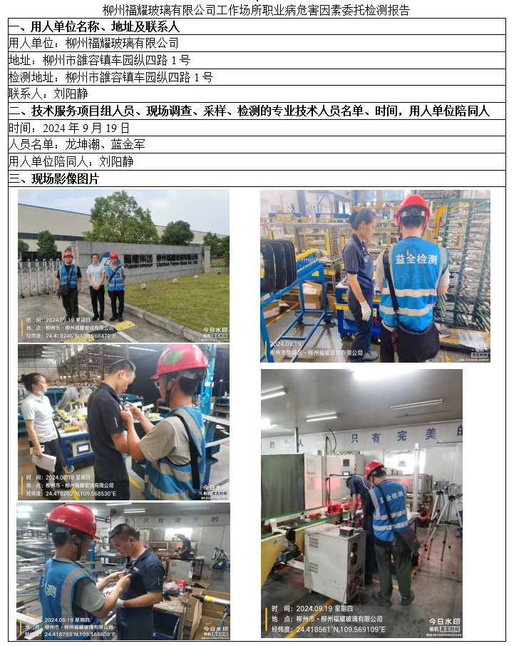 柳州福耀玻璃有限公司工作場所職業(yè)病危害因素委托檢測報告