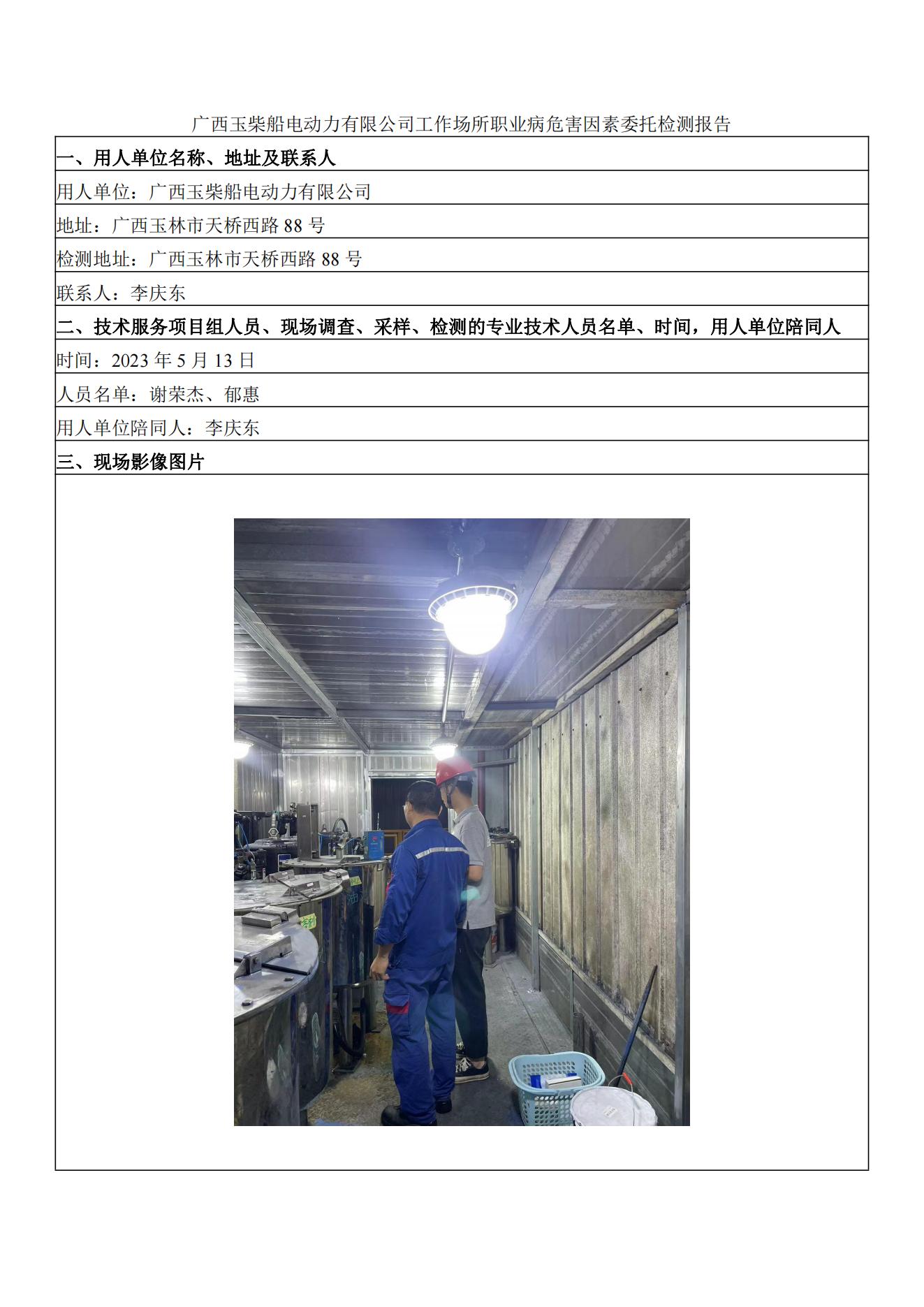 廣西玉柴船電動力有限公司工作場所職業(yè)病危害因素委托檢測報告
