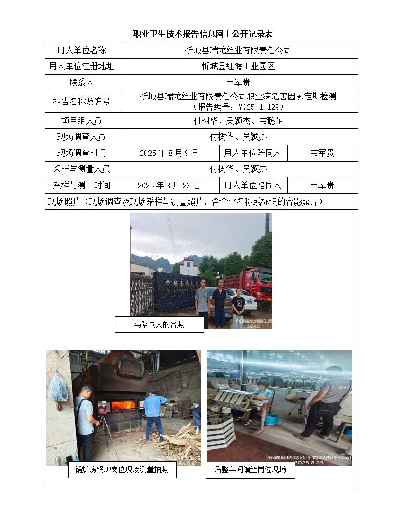 忻城縣瑞龍絲業(yè)有限責(zé)任公司職業(yè)病危害因素定期檢測