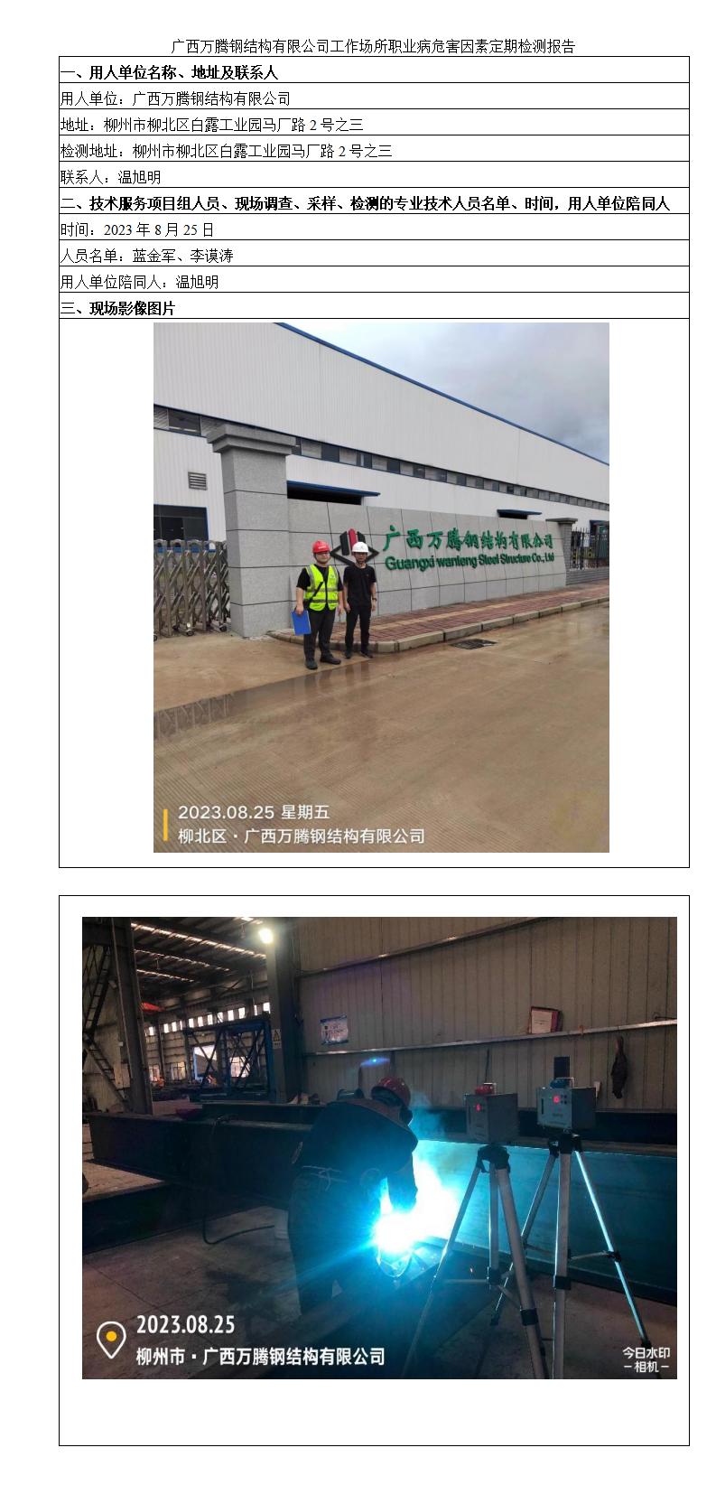 廣西萬騰鋼結(jié)構(gòu)有限公司工作場所職業(yè)病危害因素定期檢測報告